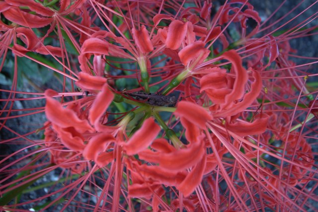 普段は彼岸花って呼ぶ事が多いけど、この状況は曼珠沙華とか天蓋花と呼ぶしか無いように思える。